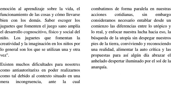 Y esa fue siempre —y lo sigue siendo— uno de los principales objetivos de los anarquistas: propagar una educación realmente libre, cooperativa y solidaria, que pueda transformar radicalmente la sociedad, frente a la escuela o ficial que lo que pretende es justamente lo contrario, es decir, reproducir tanto las diferencias sociales como la misma sociedad actual desigual e injusta. Y ello sería de gran interés hoy día frente al proyecto opuesto que con tanto éxito el neoliberalismo está implementando en todo el planeta.
